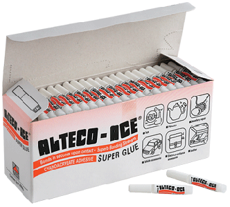 Alteco Ace / Amir Alpha is an instant bonding adhesive that reaches extremely strong bond strength at room temperature. It is suitable for use on rubber, plastics, metal, wood, ceramics, leather, marble and glass.